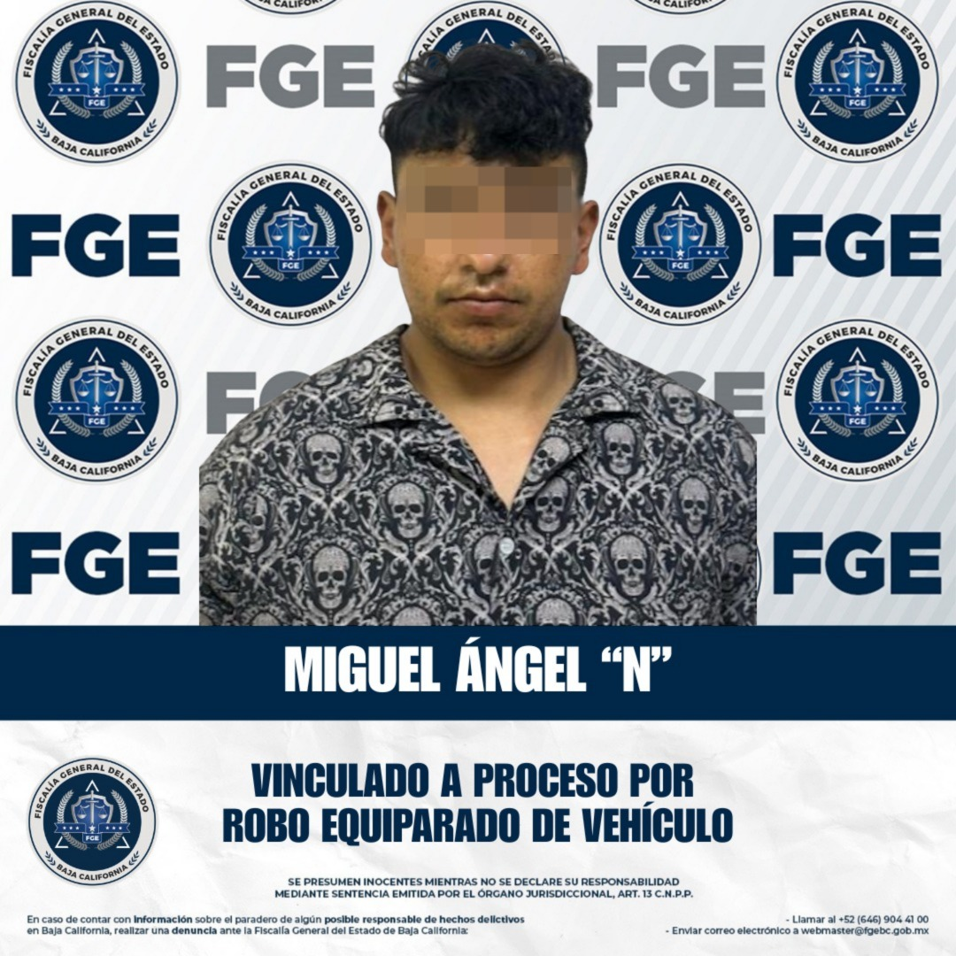 SAN QUINTÍN.- La Fiscalía Regional de San Quintín logró la vinculación a proceso de un sujeto presunto responsable de robo equiparado de vehículo y obtuvo