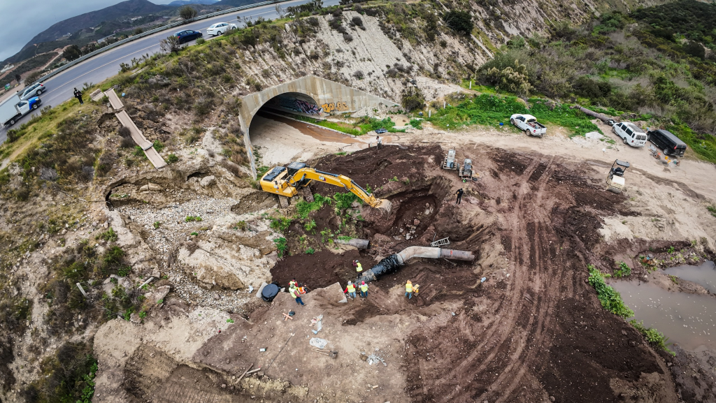 ENSENADA.- Con el objetivo de abonar a una mejora en la continuidad del servicio, la Comisión Estatal de Servicios Públicos de Ensenada (CESPE) ejecuta los trabajos de interconexión en el acueducto Morelos, en el tramo localizado a la altura del entronque de la carretera Tecate-Ensenada y el libramiento de El Sauzal.